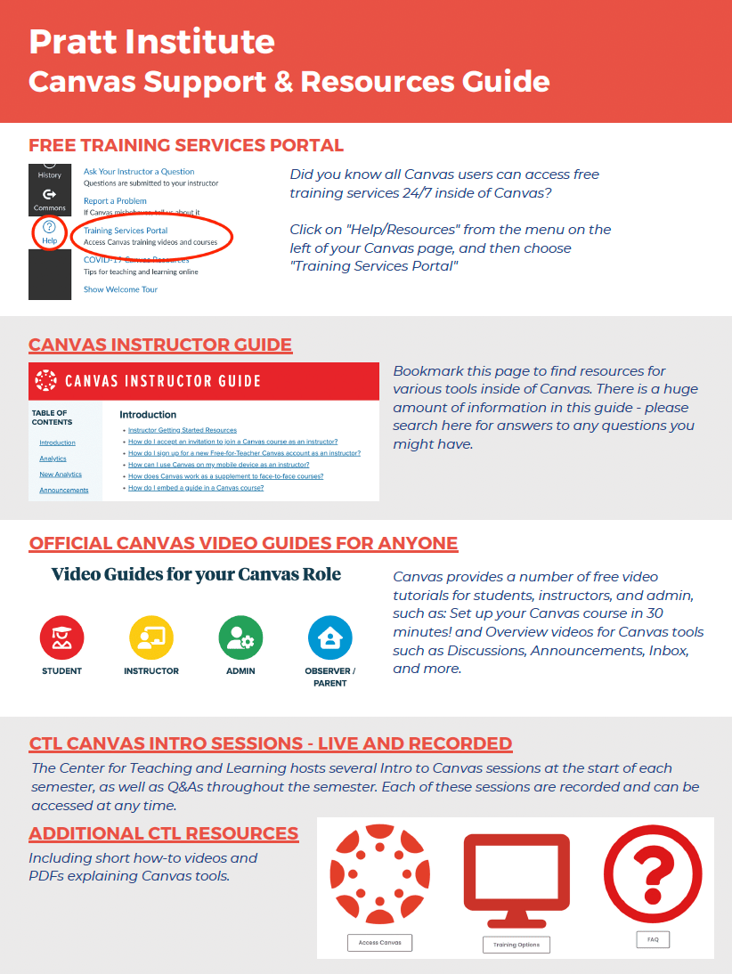 New to Canvas? Below, you’ll find three videos to get you started. The first video, made by Instructure, provides a quick overview of what Canvas is. The second and third videos below are recordings from previous tutorial sessions at the Pratt Center for Teaching and Learning. As you watch the tutorial videos, pause as needed and follow along step-by-step to set up your Canvas course.